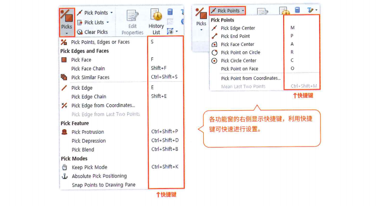 存在多个Pick Point、Edge、Face时,可以通过Pick List进行确认、修改和删除操作。
