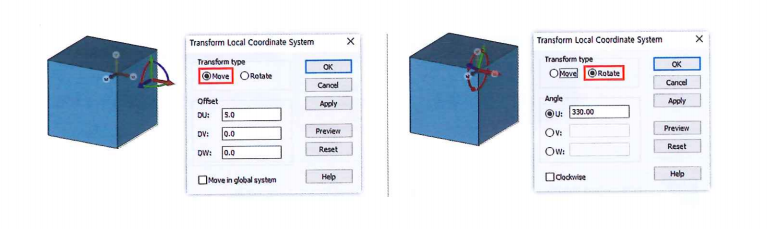 Transform WCS通过Transform WCS功能可以移动或旋转Local坐标系。该过程中可以将Local坐标系变更到不同的位置,有助于创建各种Model。