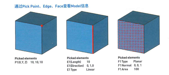 Pick是在模型上或任意空间中选择Point、Edge、Face的功能。利用Pick功能可以轻松获取模型的位置、尺寸等信息,也可以在执行Modeling和Result Handling等各种Setup操作时使用。