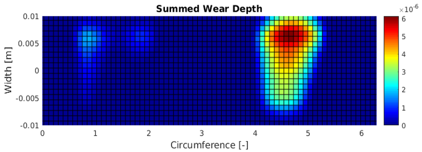 建模完成后,在Simpack后处理中可以查看相应的仿真结果数据,包括接触压力云图、最大压力曲线、磨耗厚度、接触力等。