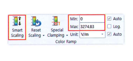 使用SmartScaling功能时,为了方便用户快速掌握场变化的趋势,会自动设置取值范围,并勾选Log选项。但是对比两个场时,也可以直接手动设置Min/Max Rangeo