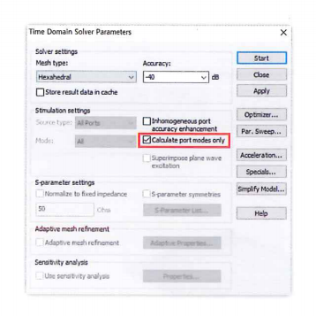 在Solver设置中勾选Calculate port modes only;按下strt按钮,只对端口模式进行快速的仿真分析。需要先了解端口模式是否正常形成的情况下,这是非常有用的功能。