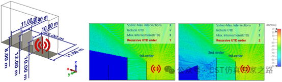 但是在CST 2024版本中仅包含1阶UTD,而CST 2025版本中对UTD的设置做了加强,用户可以自由的控制射线行为。本文我们就介绍下UTD的这三个参数对射线行为的影响。