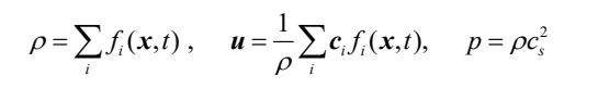 式中ci为i方向的离散速度向量;fi为粒子在i方向的速度分布函数;x为空间位置向